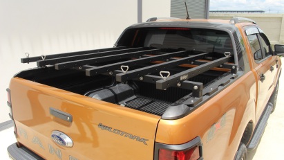 Der Gepäckträger eignet sich auch sehr gut für die Dachzelt Montage auf der Ford Ranger Ladefläche.
